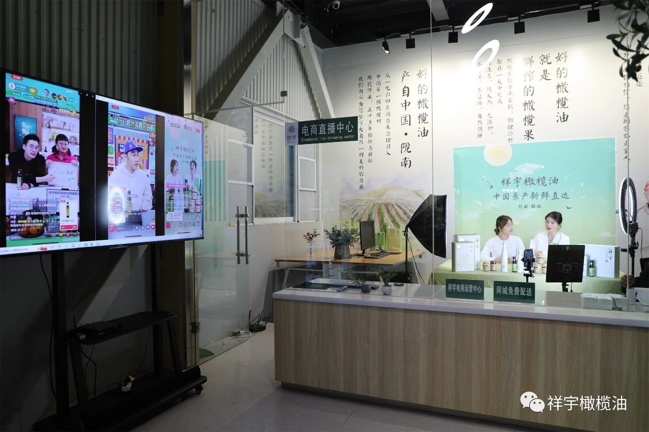 在祥宇生態(tài)產(chǎn)業(yè)園與賀家坪油橄欖基地的直播現(xiàn)場,主播們圍繞橄欖油、橄欖菜,用現(xiàn)場展示、品鑒體驗(yàn)等方式向外界推介宣傳,直播間氣氛異?;钴S。