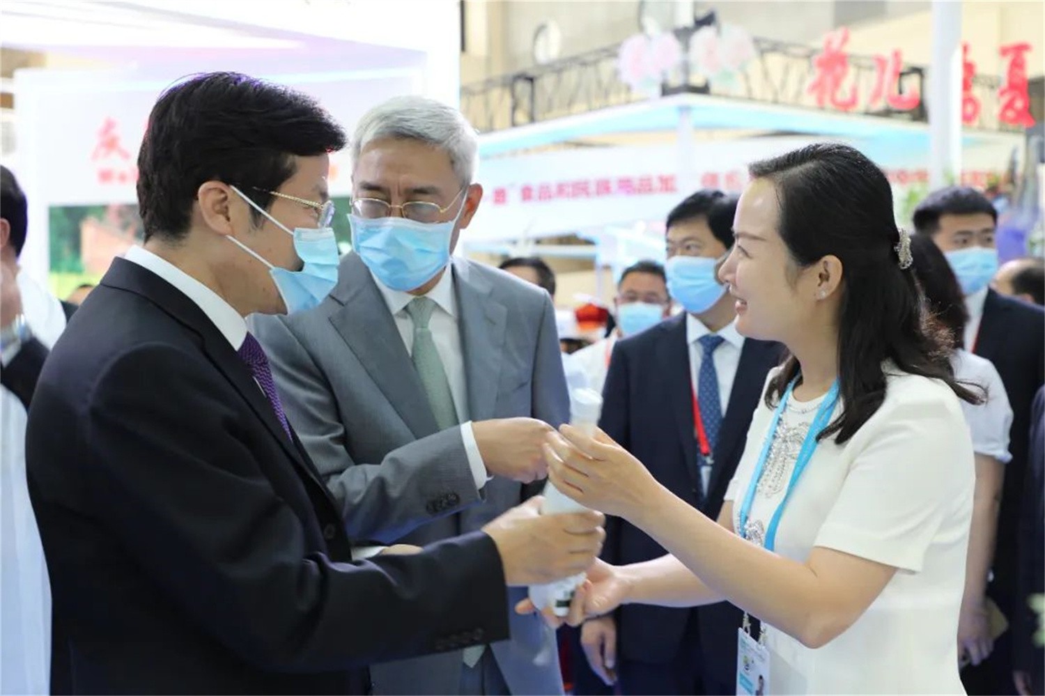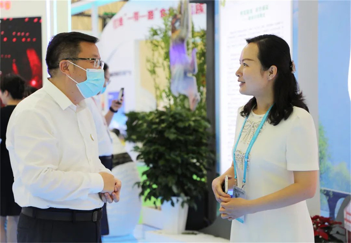 省市領(lǐng)導(dǎo)走進隴南館,祥宇公司董事長劉玉紅邀請各位領(lǐng)導(dǎo)品鑒了祥宇系列產(chǎn)品,