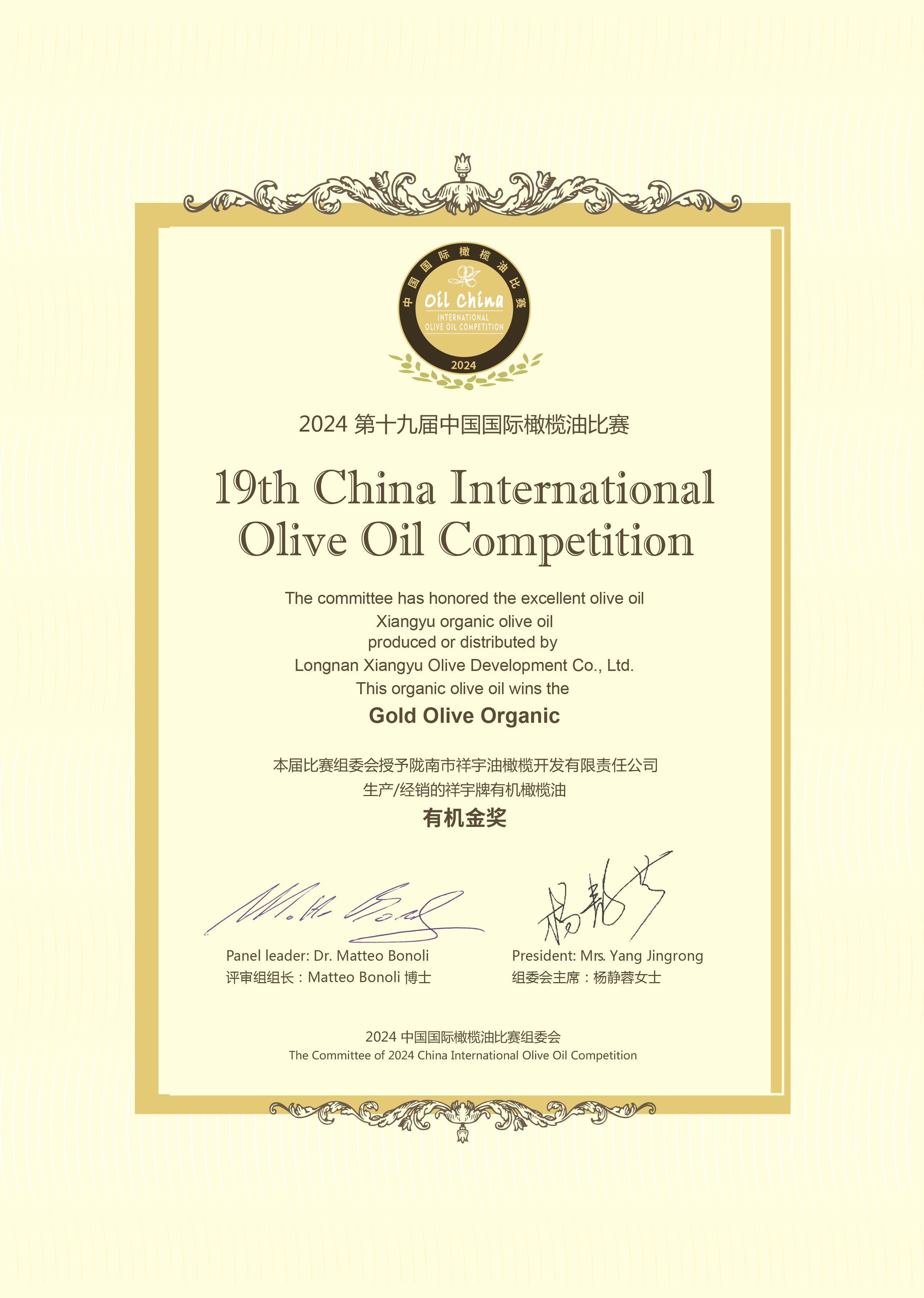 祥宇橄欖油在2024年第19屆中國(guó)國(guó)際橄欖油比賽中再次榮獲金獎(jiǎng)!