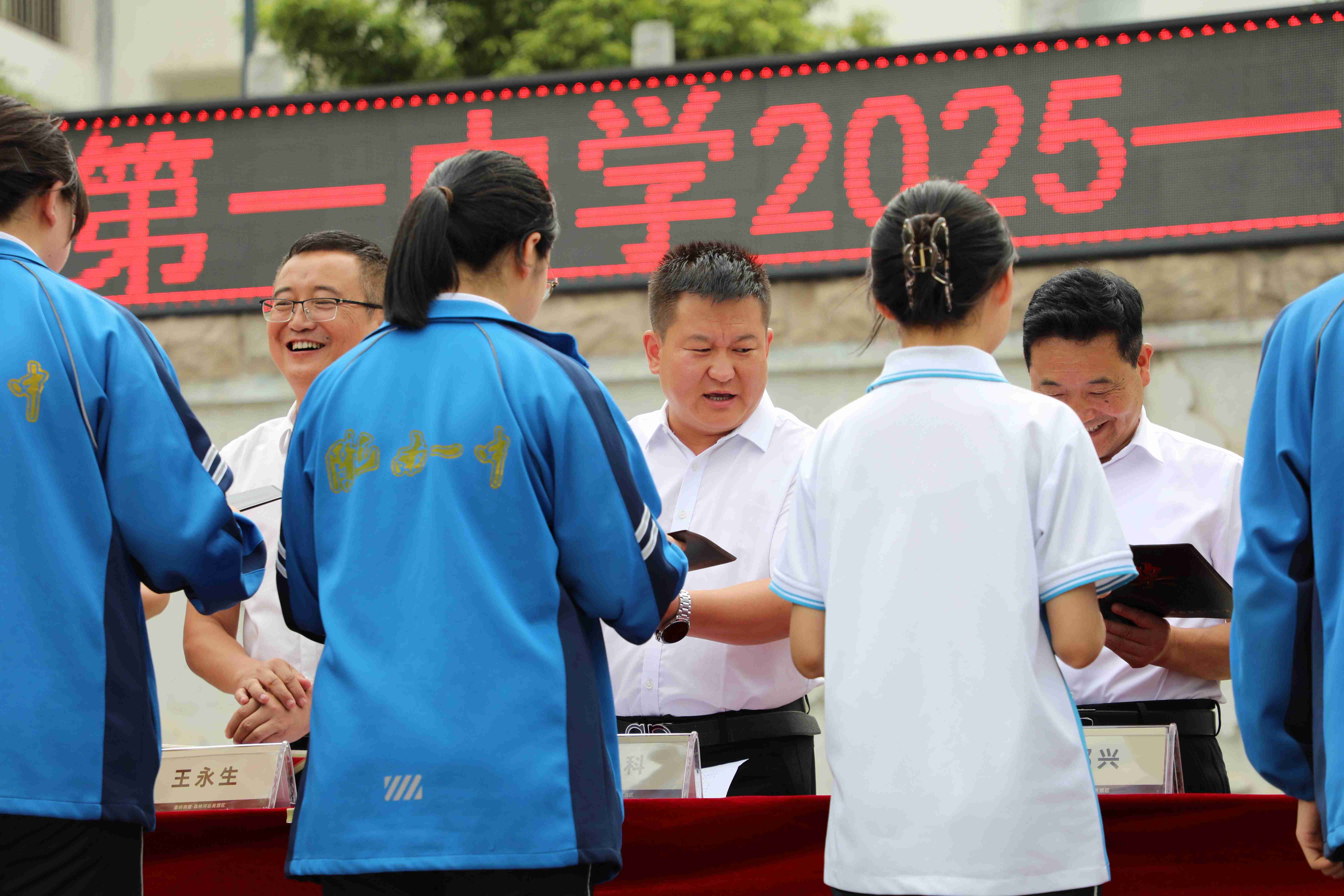 獲獎同學(xué)與家長一同走上領(lǐng)獎臺,從校領(lǐng)導(dǎo)和李總手中接過獎牌與榮譽(yù)證書,臉上洋溢著自豪與喜悅。