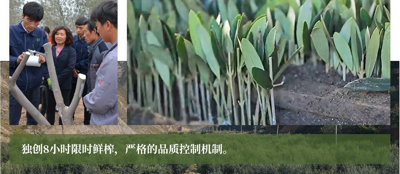 公司從產(chǎn)業(yè)鏈起始端著手,引進(jìn)良種優(yōu)苗,繁育基地苗圃,優(yōu)化樹種,以優(yōu)質(zhì)的橄欖樹苗為生產(chǎn)特級(jí)初榨橄欖油提供基礎(chǔ)保障 ,在以自建萬(wàn)畝國(guó)家標(biāo)準(zhǔn)化油橄欖種植基地、簽訂合作社及農(nóng)戶的基礎(chǔ)上,經(jīng)過多年的試種改良,培育出掛果率出油率高、耐寒耐旱且適宜隴南市栽種的萊星、鄂植8號(hào)、阿斯、科拉蒂、皮瓜爾、皮削利等多個(gè)優(yōu)良品種。